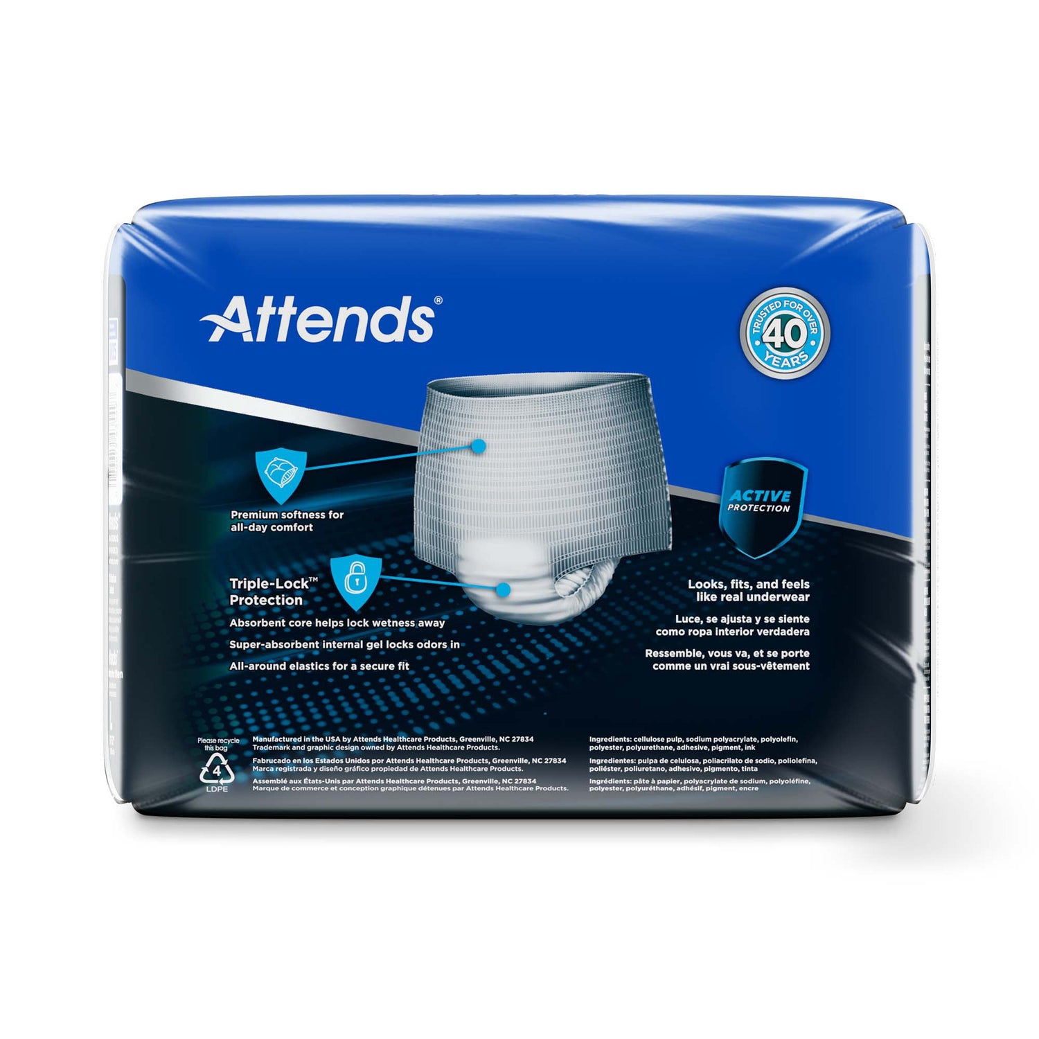 Absorbent Underwear Attends® For Men Pull On With Tear Away Seams Adult Male Disposable Heavy Absorbency - Large / Bag is backordered and will ship as soon as it is back in stock.