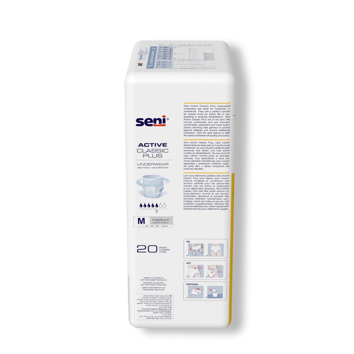 - Seni Active Classic Plus disposable underwear is a perfect solution for people leading an active life or participating in physical rehabilitation