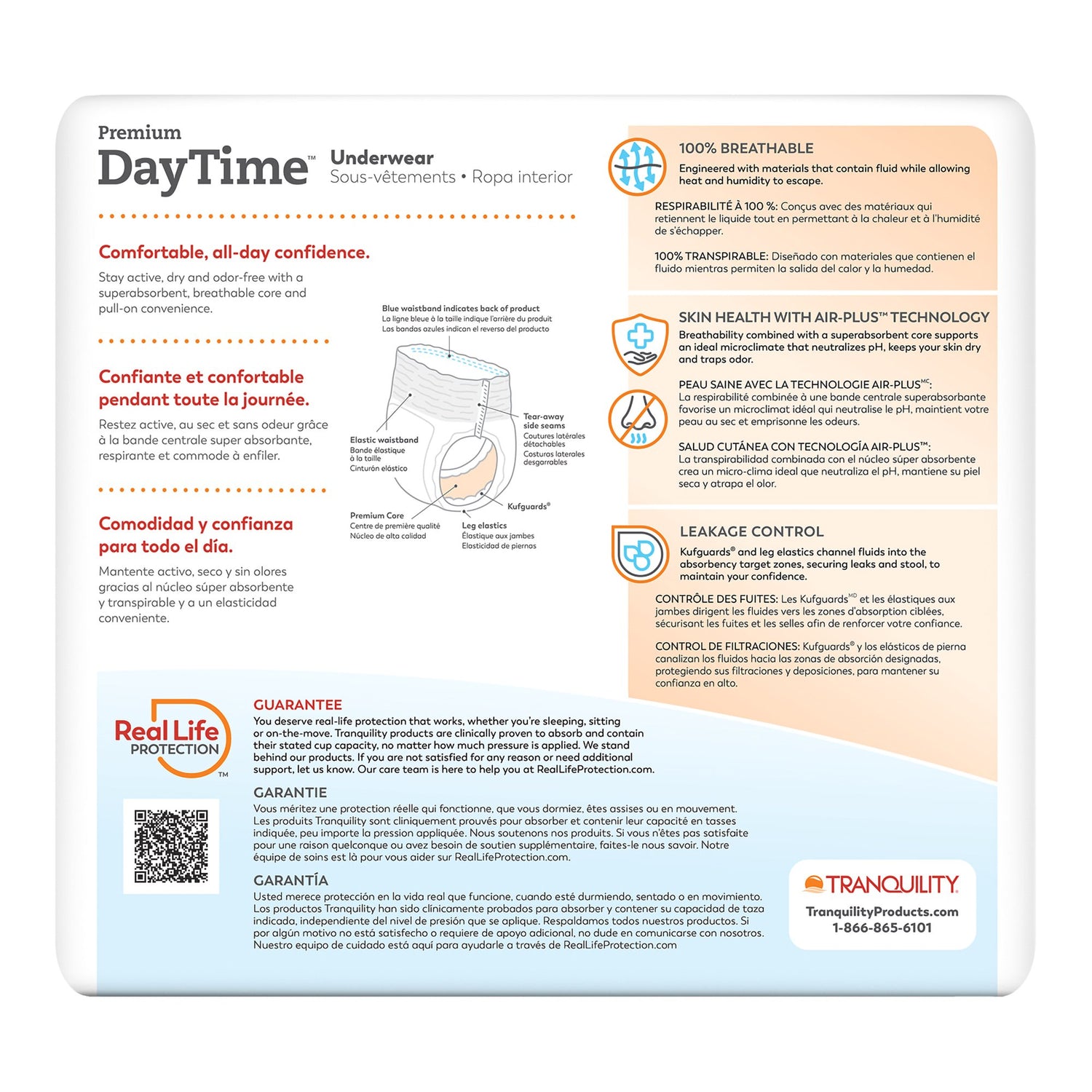 - Tranquility® Premium DayTime™ Underwear provides enhanced discretion with a slimmer profile than its OverNight™ counterpart