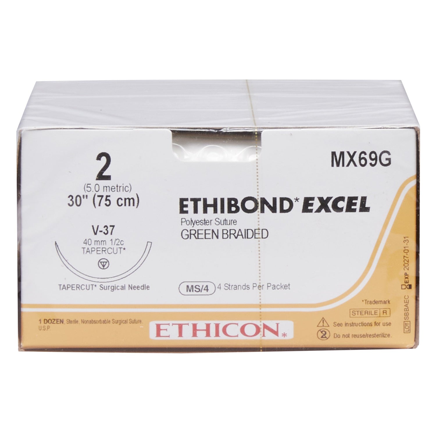 Nonabsorbable Suture With Needle Ethibond Polyester V-37 1/2 Circle Taper Cutting Needle Braided - Size 5 / Dozen is backordered and will ship as soon as it is back in stock.
