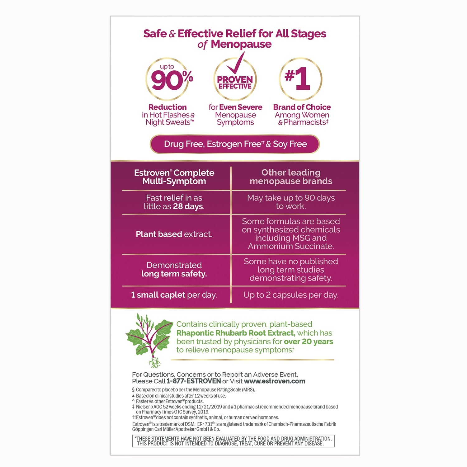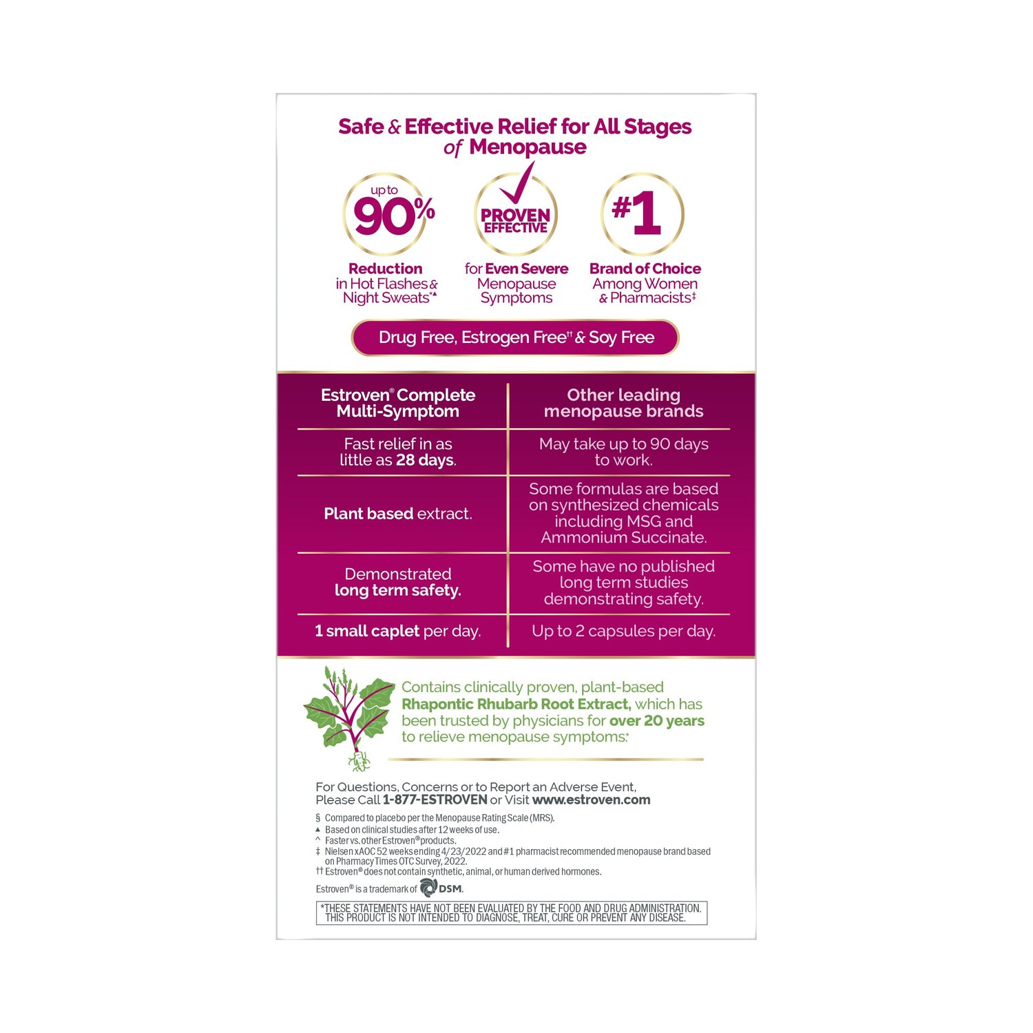 Dietary Supplement Estroven® Complete Care Rhaponic Rhubarb Root Extract 4 Mg Strength Caplet