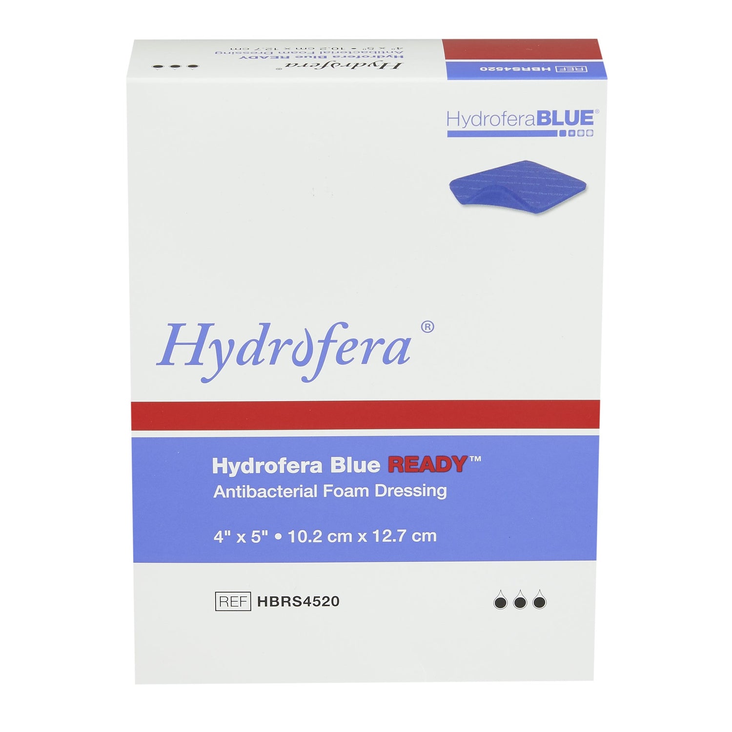 Antibacterial Foam Dressing Hydrofera Blueâ® Ready 4 X 5 Inch Without Border Waterproof Film Backing Nonadhesive Rectangle Sterile