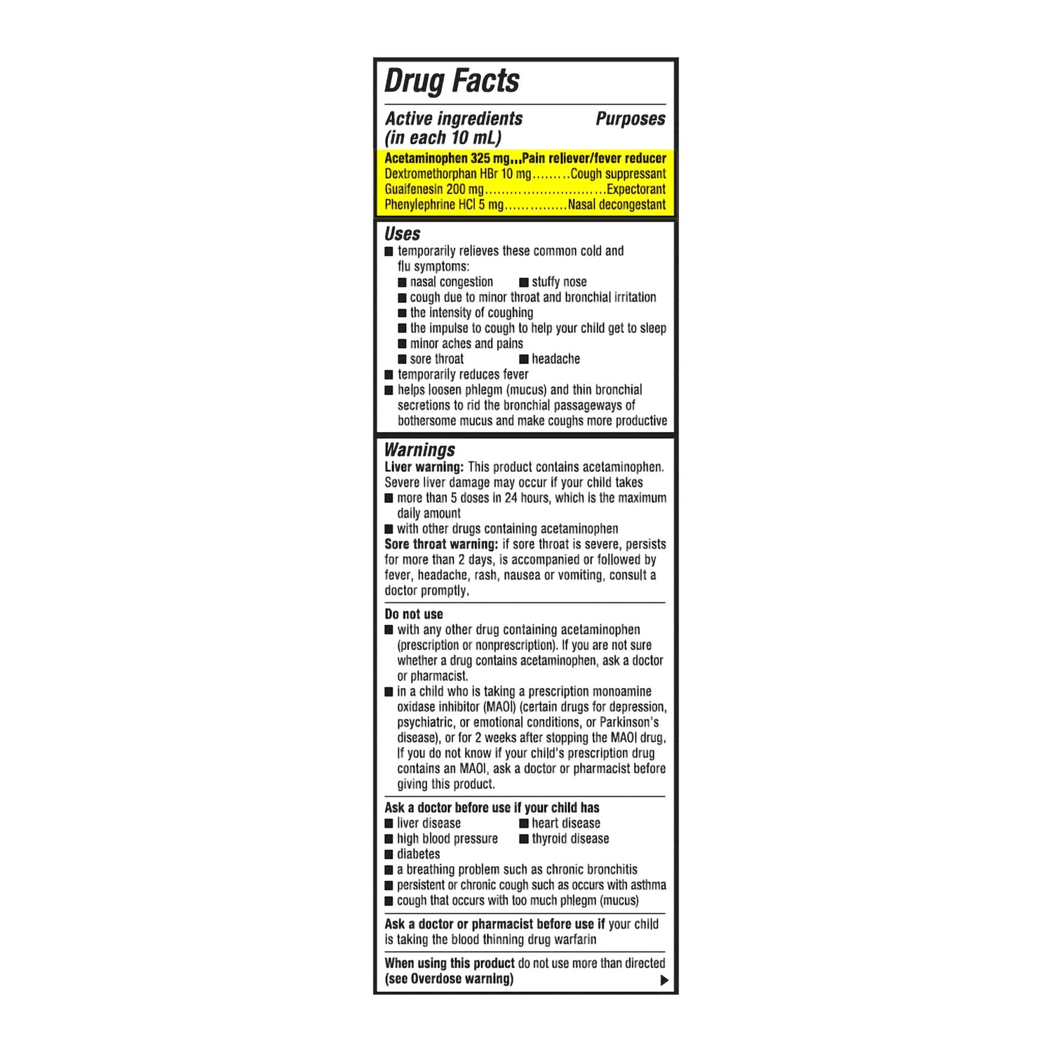 Children's Cold and Cough Relief Children's Mucinex® 325 mg - 10 mg - 200 mg - 5 mg / 10 mL Strength Liquid 4 oz. - Each está agotado y se enviará tan pronto como vuelva a estar disponible.