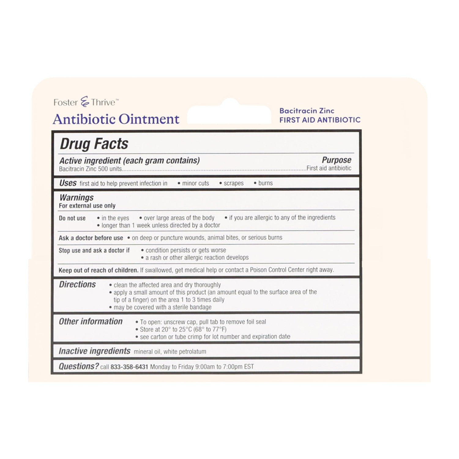 First Aid Antibiotic Bacitracin Foster & Thrive™ Ointment 1 Oz. Tube