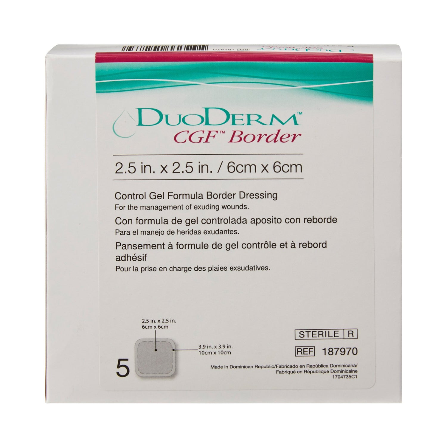 - DuoDERM® CGF® Border Sterile Dressing is for use on partial and full thickness wounds in hard to dress areas