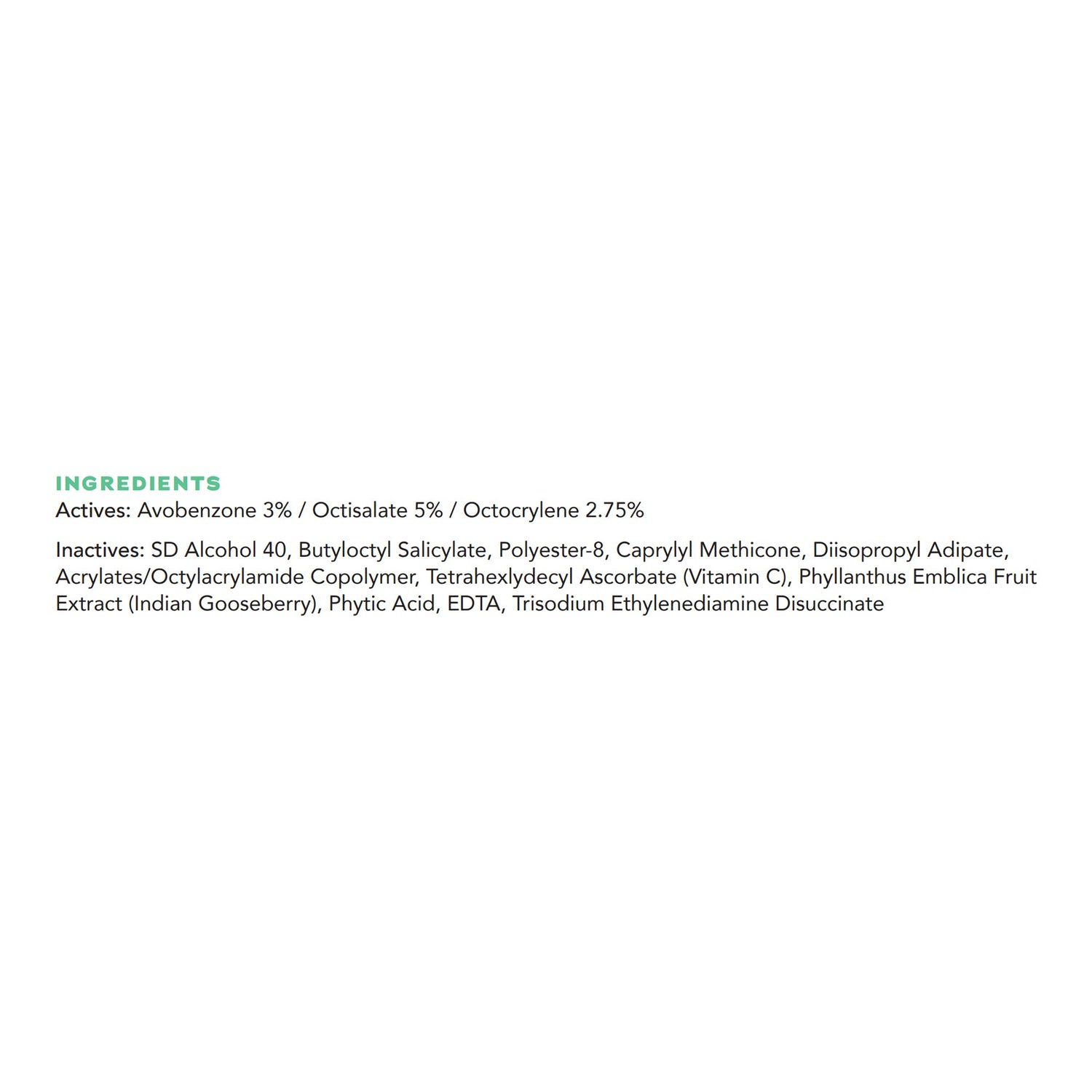 - Antioxidants - Phyllanthus Emblica Fruit extract (Indian Gooseberry) and Vitamin C