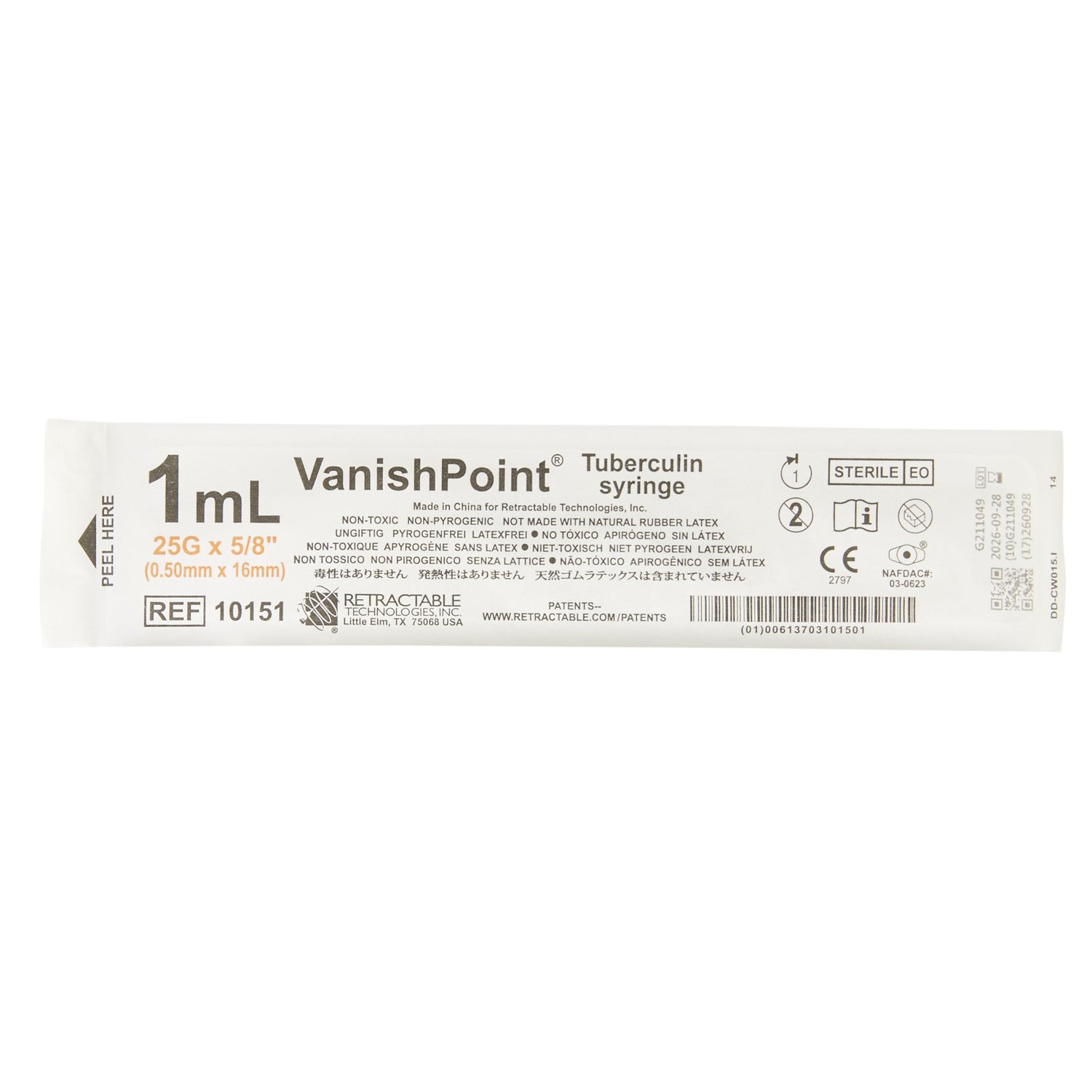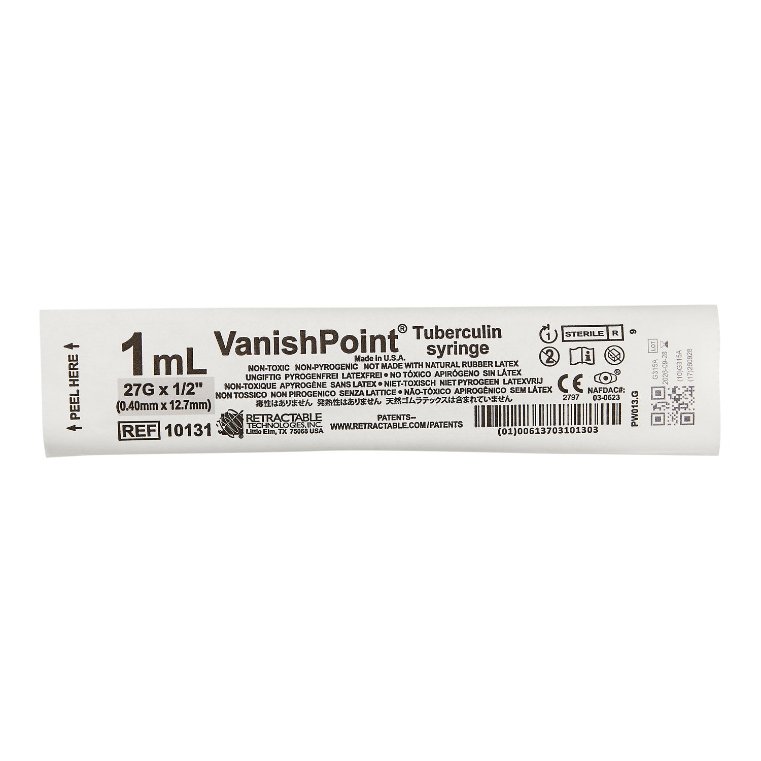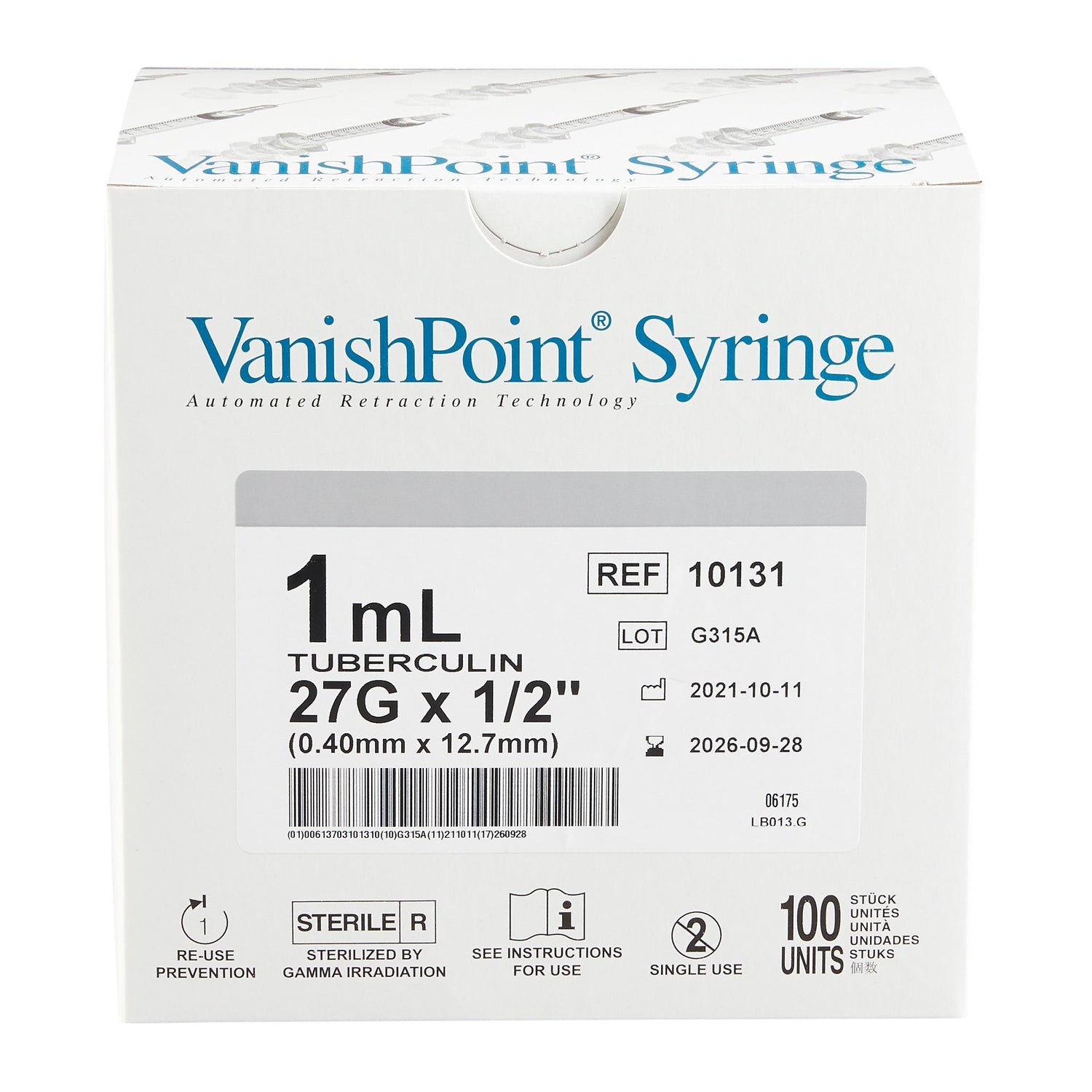 Safety Tuberculin Syringe With Needle Vanishpoint® 1 Ml Retractable Safety Needle Regular Wall