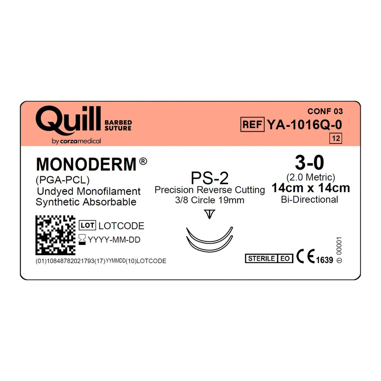 Absorbable Suture With Needle Quill™ Monoderm™ Polyglycolic Acid / Pcl Ps-2 3/8 Circle Precision Reverse Cutting Needle Size 3-0 Barbed Monofilament
