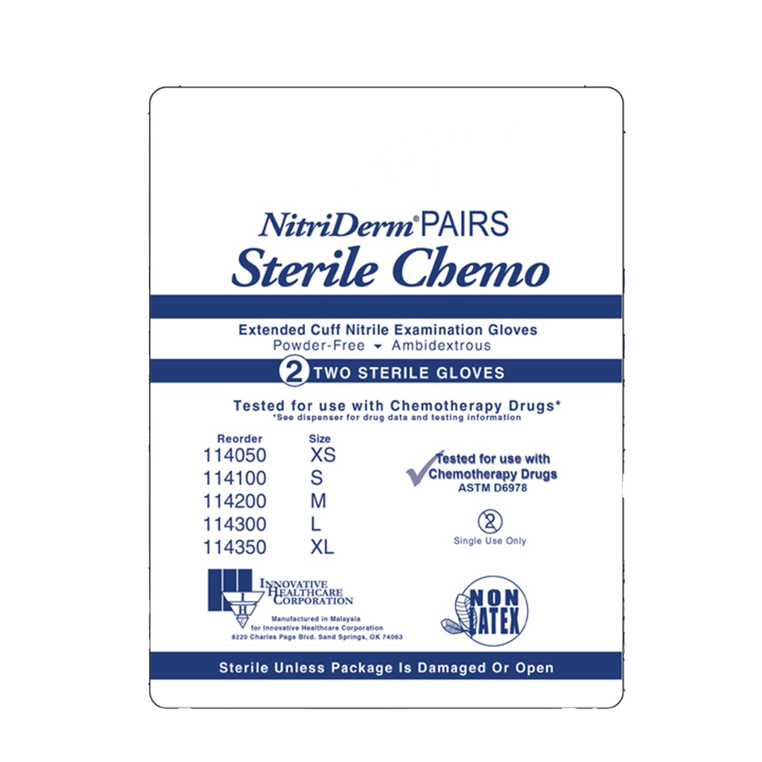 - Sterile nitrile pairs, tested for use with chemotherapy drugs