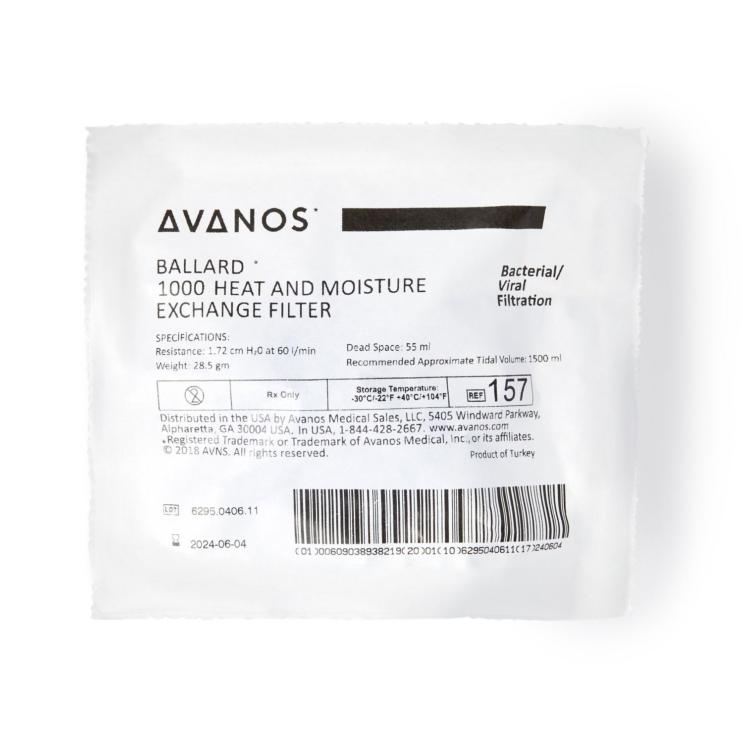 Heat And Moisture Exchanger With Filter Ballard* 30 Mg H₂o/l @ Vt 1000 Ml 1.0 Cm H₂o @ 30 Lpm