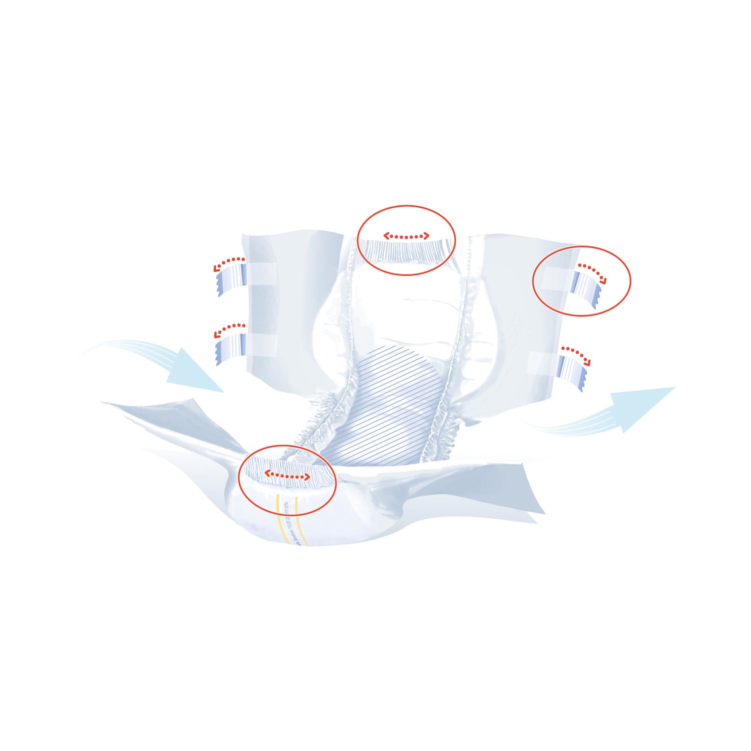 - Double wetness indicator helps caregiver know when changing is necessary