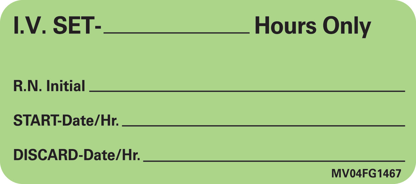 Pre-printed Label Medvision® Anesthesia Label Green Paper Iv Set_hours Only Black Syringe Label 1 X 2-1/4 Inch
