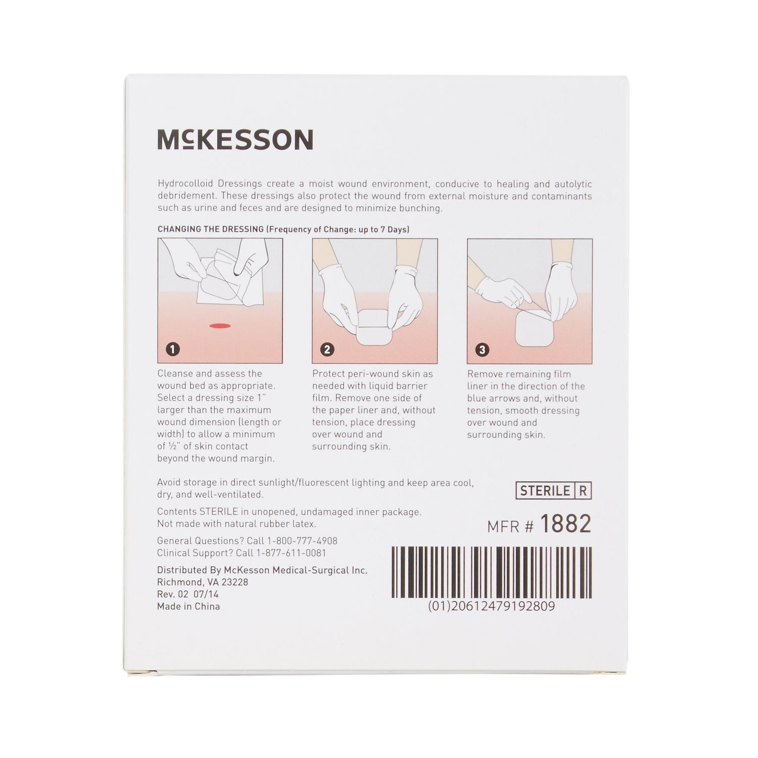 Thin Hydrocolloid Dressing Mckesson Film Backing 2 X 2 Inch Square Hydrocolloid
