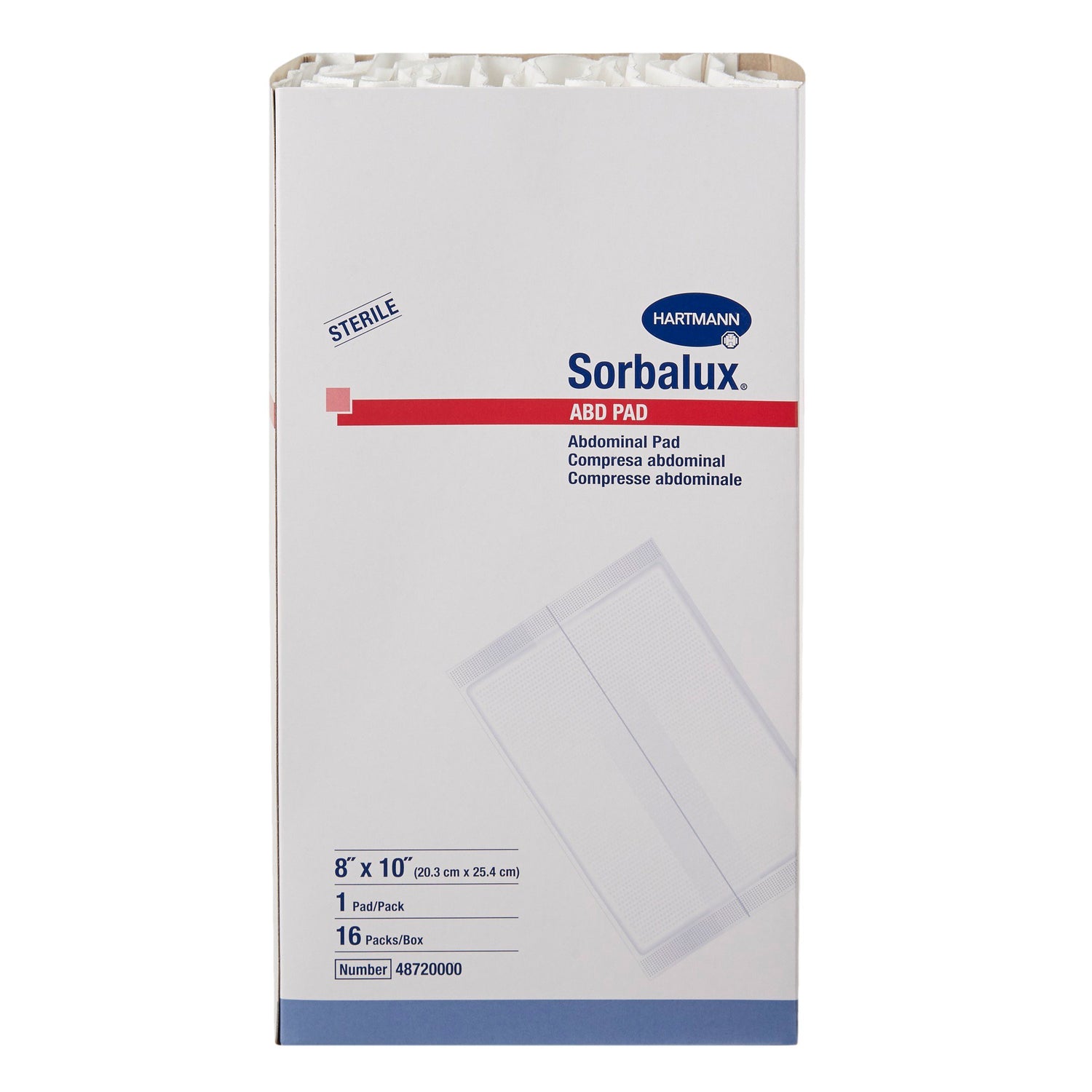 Abdominal Pad Sorbalux® Abd 1-ply Sterile 1 Per Pouch - 8 X 10 Inch / Box is backordered and will ship as soon as it is back in stock.