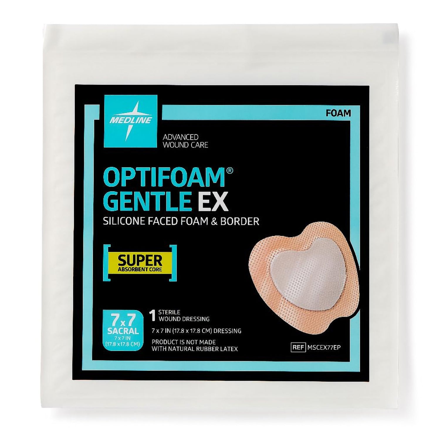 Foam Dressing Optifoam® Gentle Ex With Border Waterproof Backing Silicone Face And Border Sacral Sterile - 7 X 7 Inch / Case is backordered and will ship as soon as it is back in stock.